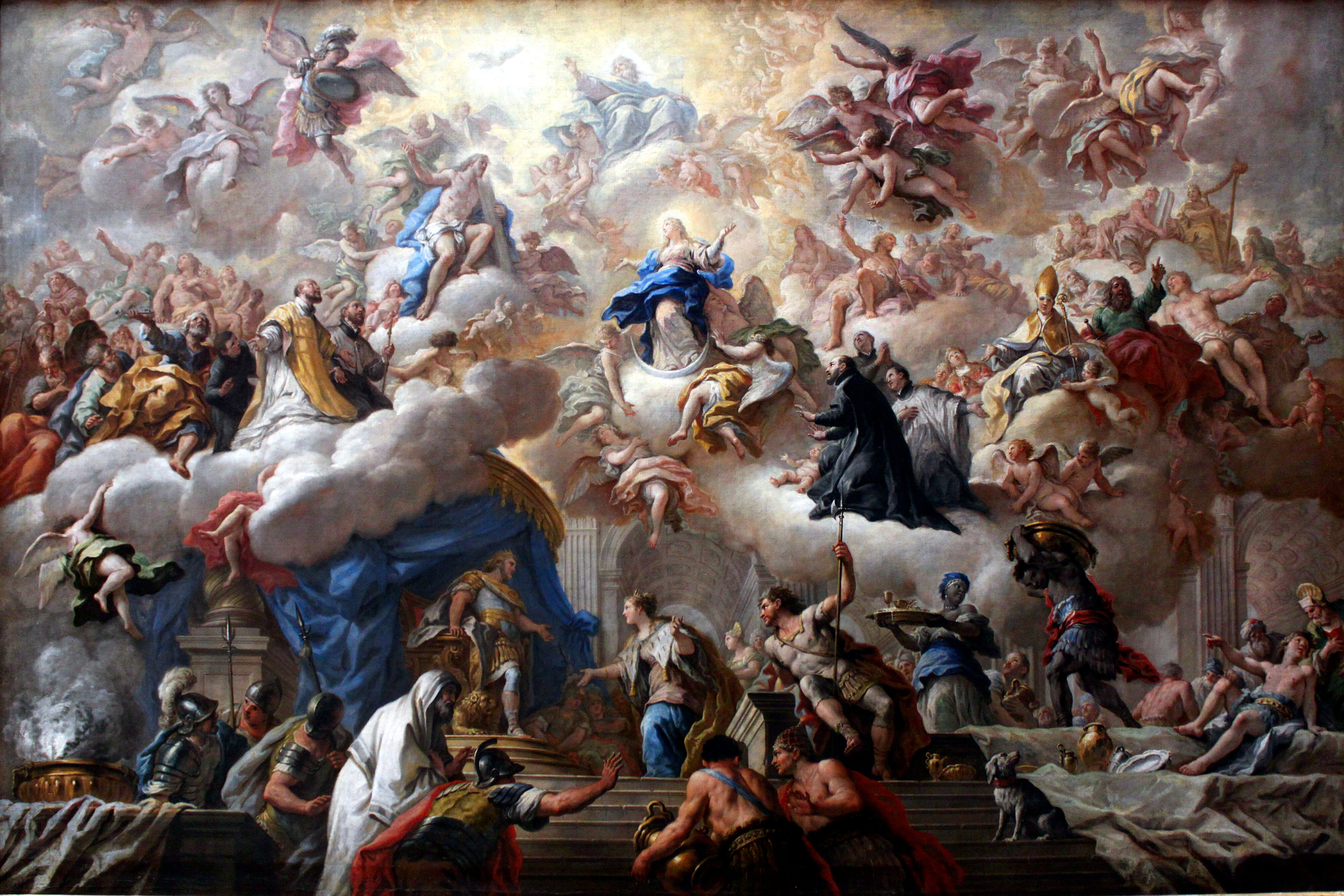 44. Por tanto, después de elevar a Dios muchas y reiteradas preces e invocar la luz del Espíritu de la Verdad, para gloria de Dios omnipotente, que otorgó a la Virgen María su peculiar benevolencia; para honor de su Hijo, Rey inmortal de los siglos y vencedor del pecado y de la muerte; para acrecentar la gloria de esta misma augusta Madre y para gozo y alegría de toda la Iglesia, por la autoridad de Nuestro Señor Jesucristo, de los bienaventurados apóstoles Pedro y Pablo y por la nuestra, pronunciamos, declaramos y definimos ser dogma de revelación divina que la Inmaculada Madre de Dios, siempre Virgen María, cumplido el curso de su vida terrena, fue asunta en cuerpo y alma a la gloria celeste.