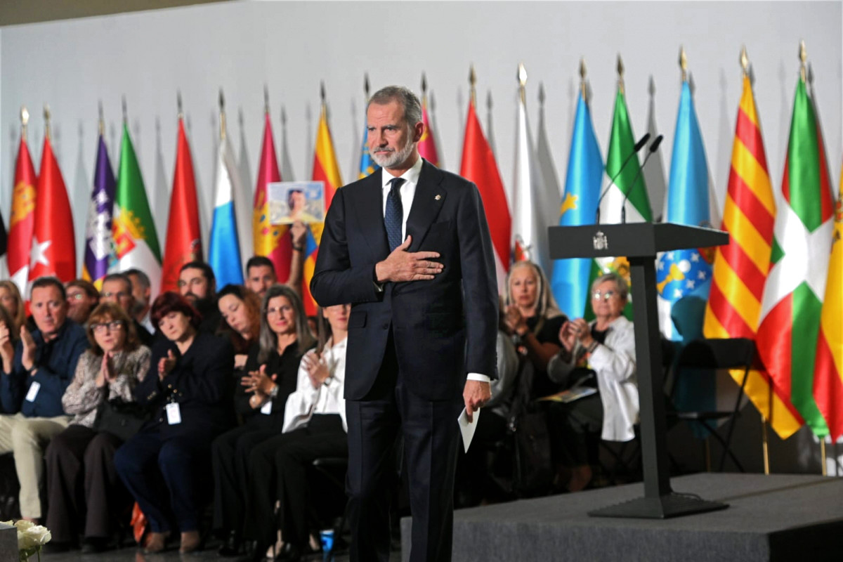 Felipe Borbón realizando el masónico Signo de Fidelidad en el Homenaje de Estado por la DANA de Valencia.