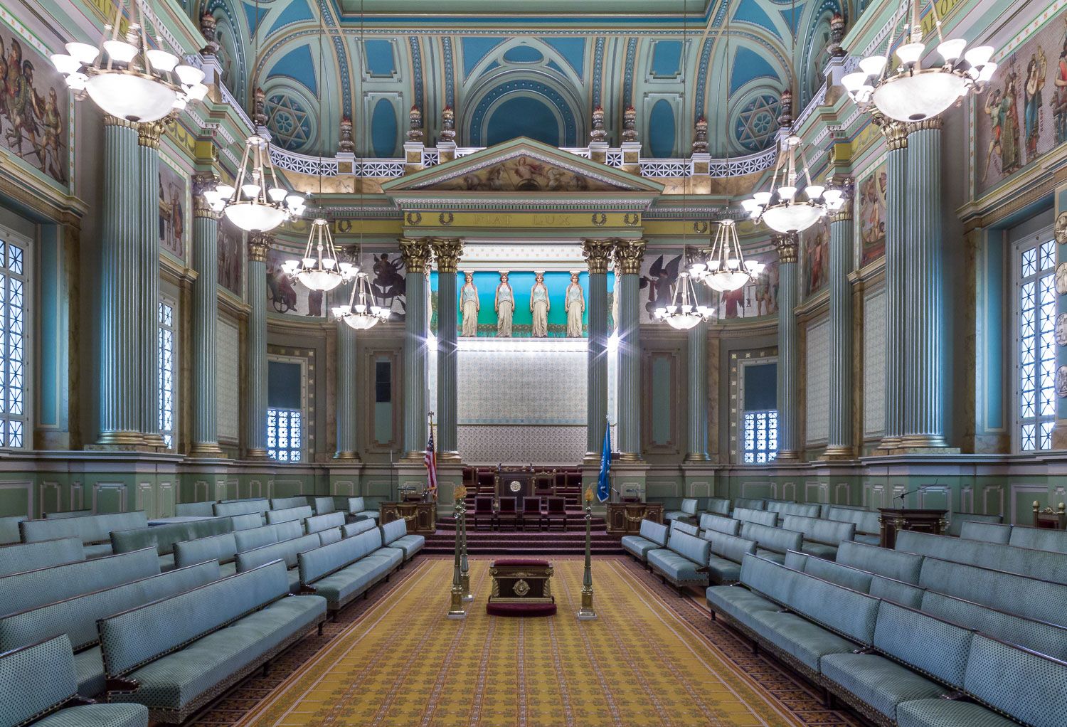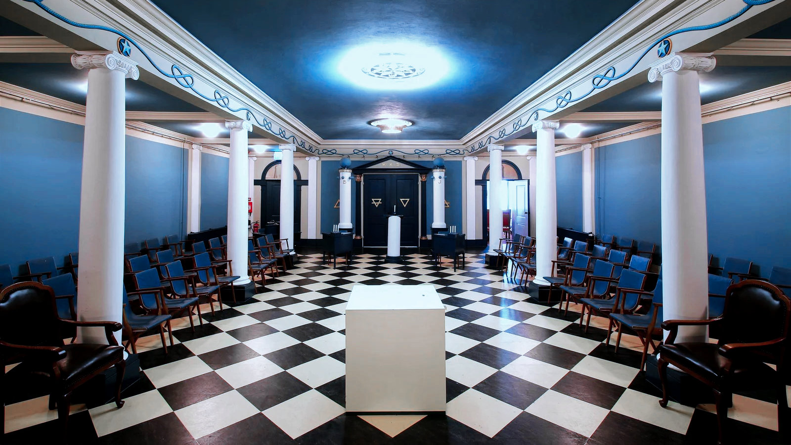 A continuación Felipe Borbón ocupa el trono de dirección de la ceremonia (ejemplo). Frente al trono, que en la logia es ocupado por el Gran Maestre o representante de Lucifer, encontramos al cubo masónico representando al concepto cabalista del ‘Adam Kadmon’ u Hombre Primordial (el Übermensch de Nietzsche). Y tras el cubo y al fondo, en la logia, es donde se encuentra la única puerta de entrada y salida. Un zulo.