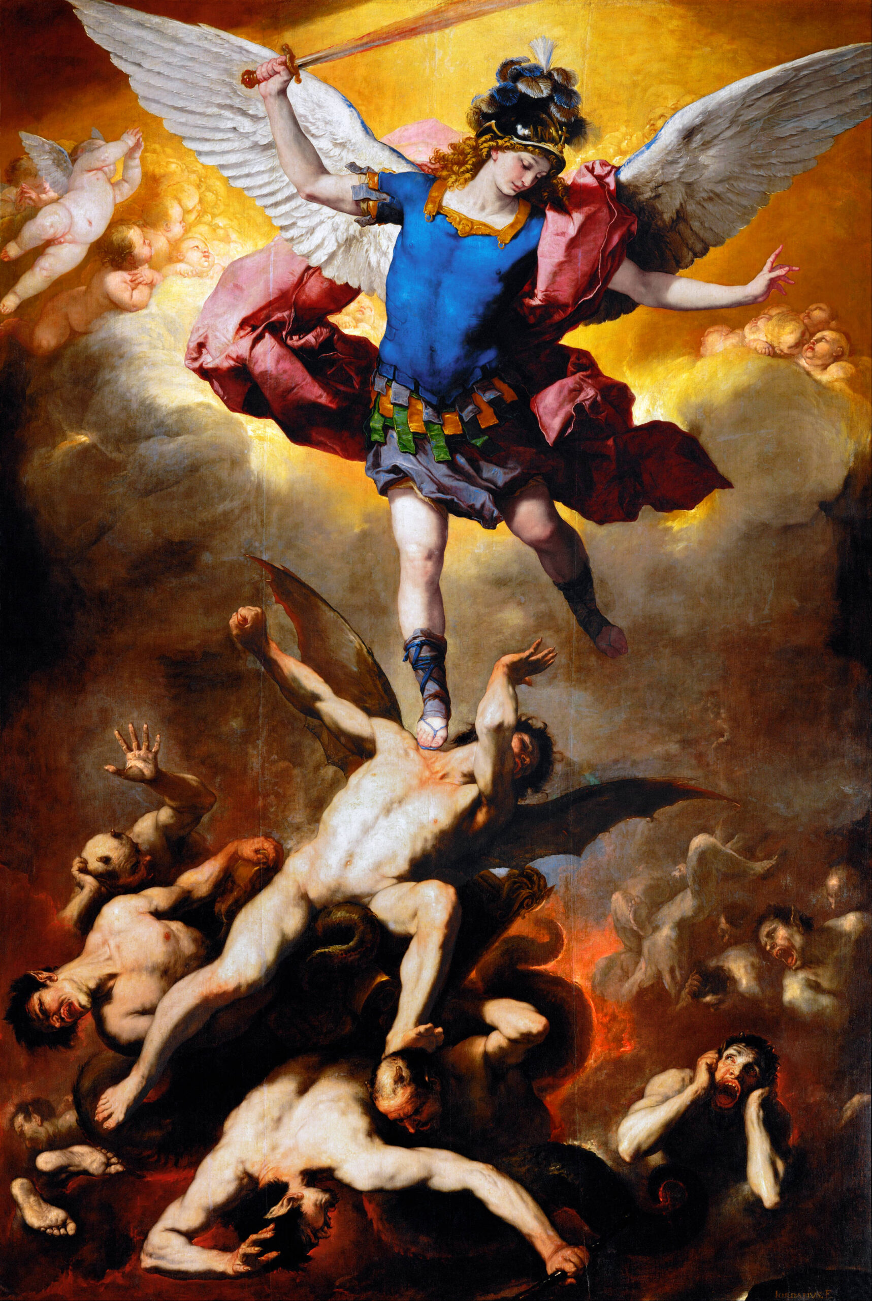 Gloriosísimo príncipe de la milicia celestial, Arcángel San Miguel, defiéndenos en la lucha que mantenemos combatiendo “contra los principados y potestades, contra los caudillos de este mundo tenebroso, contra los espíritus malignos esparcidos por los aires” (Ef. 6, 12). Ven en auxilio de los hombres que Dios creó incorruptibles a su imagen y semejanza (Sap. 2, 23), y a tan “alto precio rescatados” (I Cor. 6, 20) de la tiranía del demonio. Con las huestes de los ángeles buenos pelea hoy los combates del Señor, como antaño luchaste contra Lucifer, corifeo de la soberbia y contra sus ángeles apóstatas. Ellos no pudieron vencer, y perdieron su lugar en el Cielo. “Fue precipitado el gran dragón, la antigua serpiente el denominado diablo y Satanás, el seductor del universo: fue precipitado a la tierra y con él fueron arrojados sus ángeles” (Apoc. 12, 8-9).